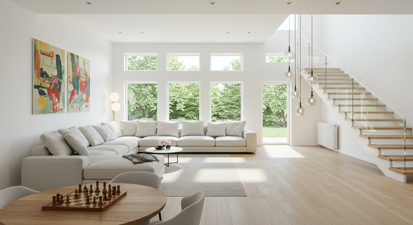 The garden floor opens with a dramatic gallery and entertaining room punctuated by white oak floors, a glass staircase, and linear Italian crystal pendants by Il Pezzo Mancante. The sun-lit eat-in kitchen faces the garden and has enough room for a table of eight, plus an abundance of luxury touches – including a generous suite of Thermador appliances (like two full-size refrigerators), designer Italian cabinetry, and radiant floor heating.